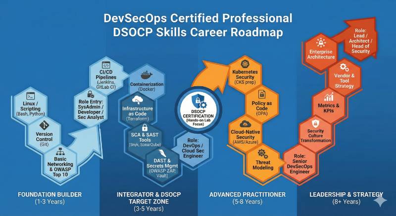 DevSecOps Certified Professional (DSOCP) is meant for engineers and managers who want to understand and apply DevSecOps in a practical way: secure CI/CD, safe infrastructure changes, secrets control, vulnerability triage, and secure cloud-native delivery.